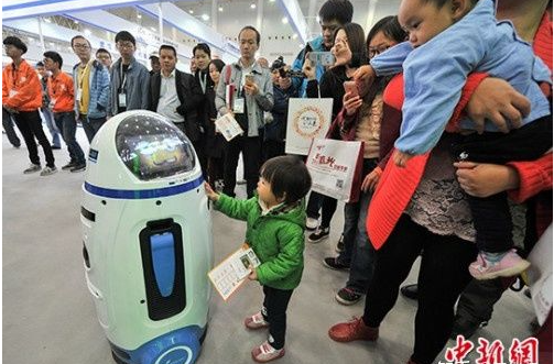 资料图:一款家庭用智能机器人吸引小朋友目光