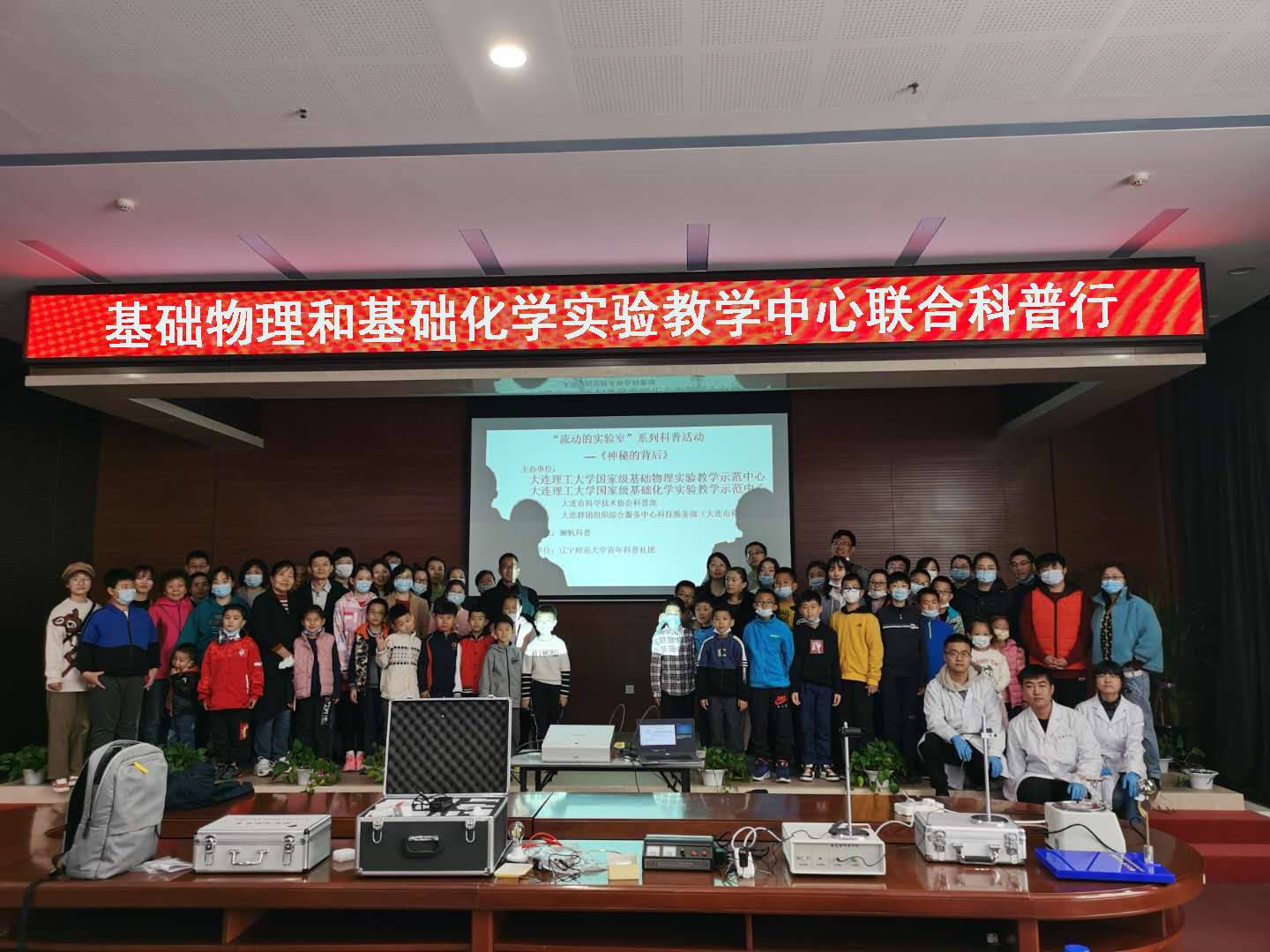 我校基础物理和基础化学实验中心作为国家级实验教学示范中心,在做好日常教育教学工作的基础上,还利用中心科普教学资源丰富、实验器材种类多等特点,近几年与大连市科技局、大连市科协、市青少年文化宫及科技中心等其它科普部门积极配合,开展了一系列科普活动,取得了一定的社会反响,深受公众的喜爱。未来,基础物理和基础化学实验中心将继续履行责任使命,长期向社会大众和中小学开展科普教育,为提高全民的科学素养和激发中小学生对科学的兴趣贡献力量。